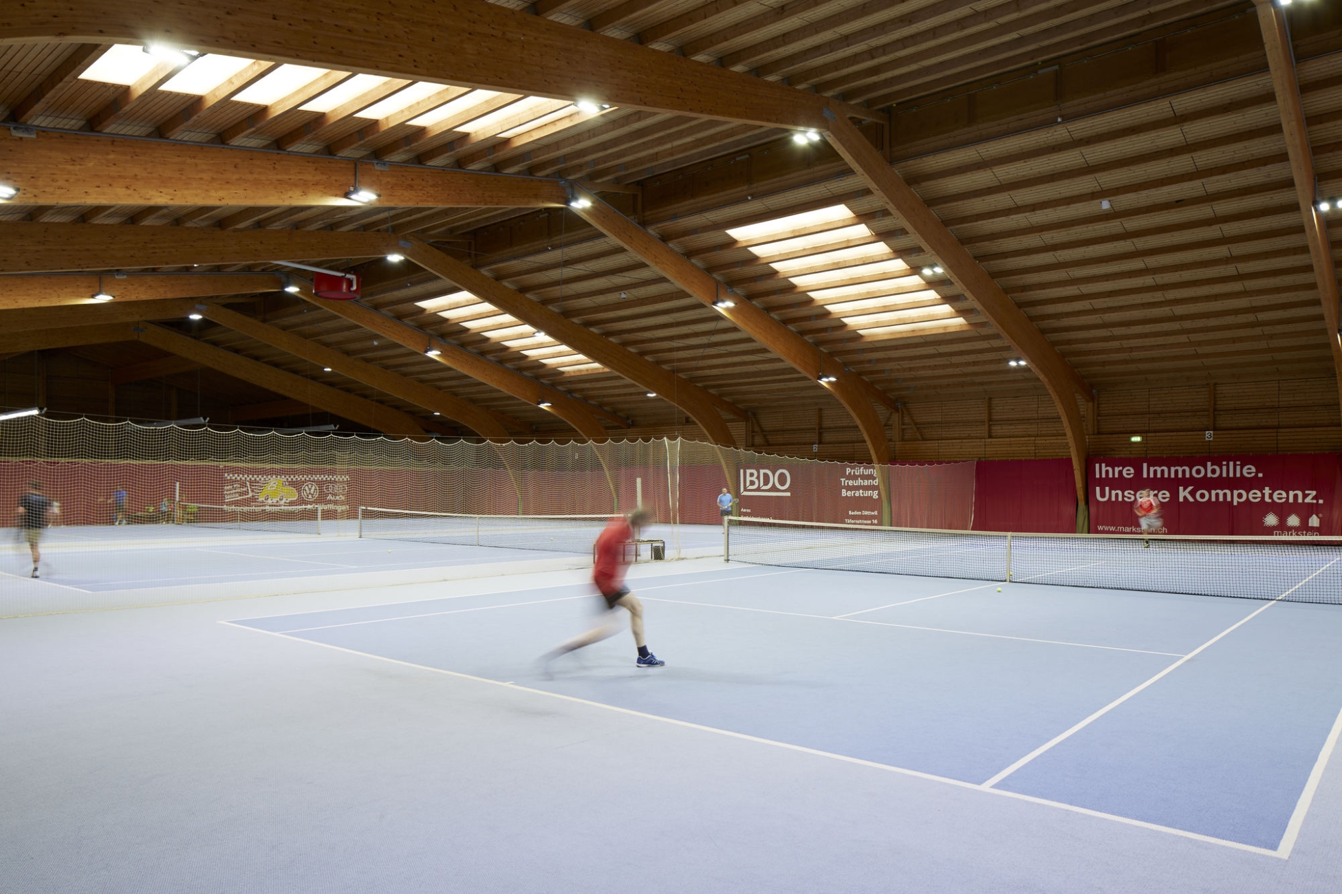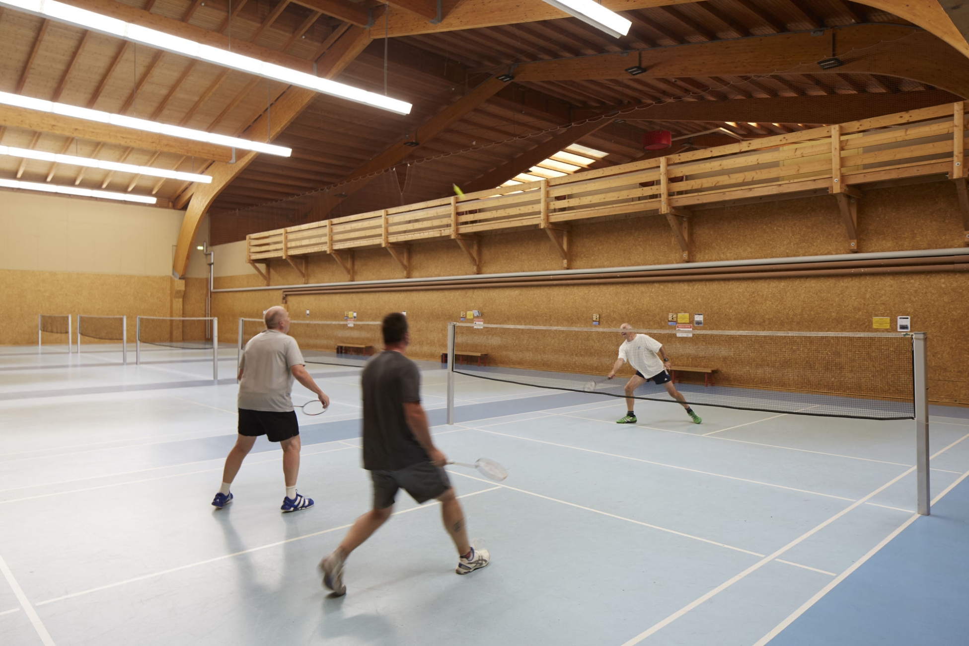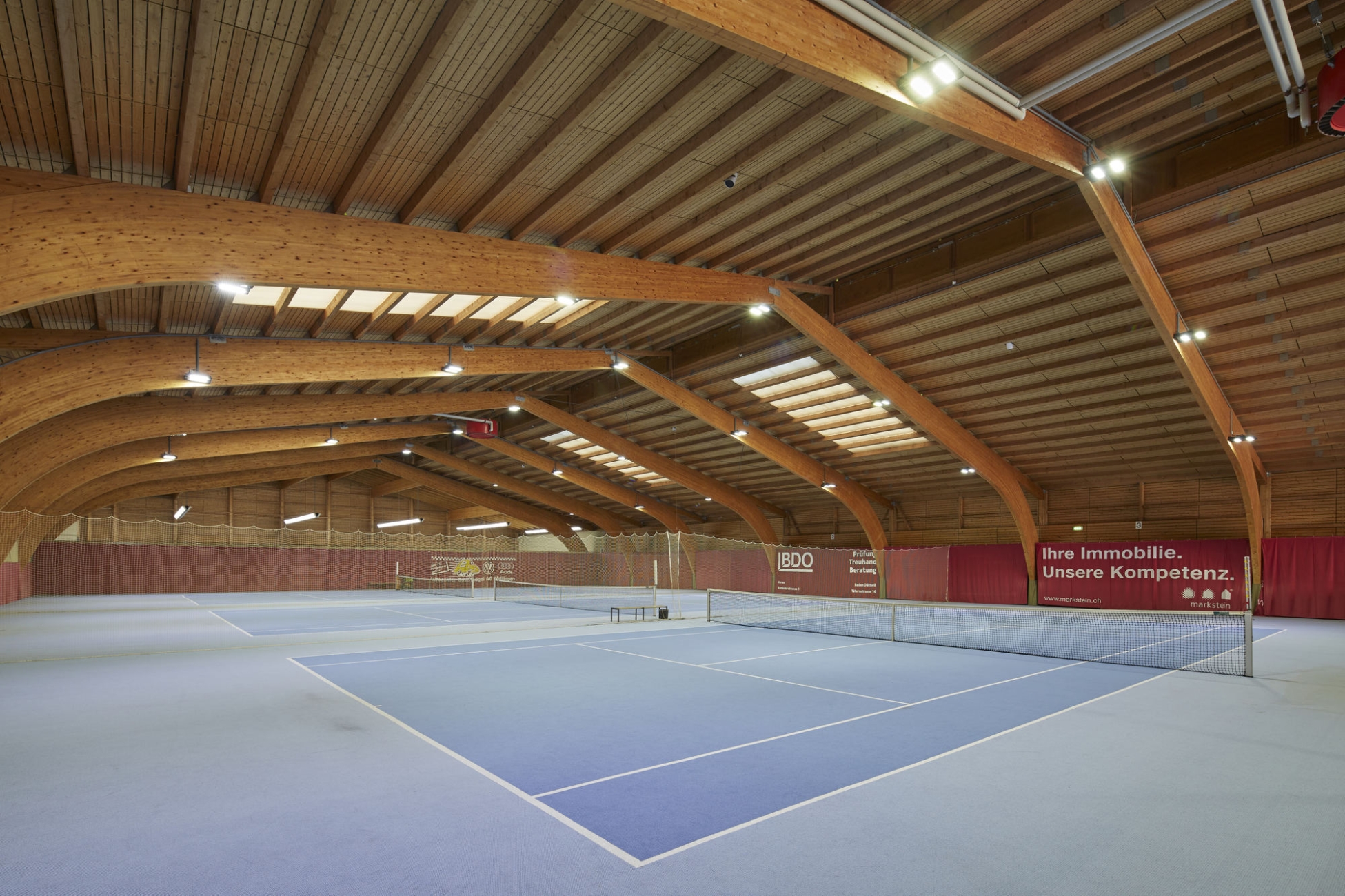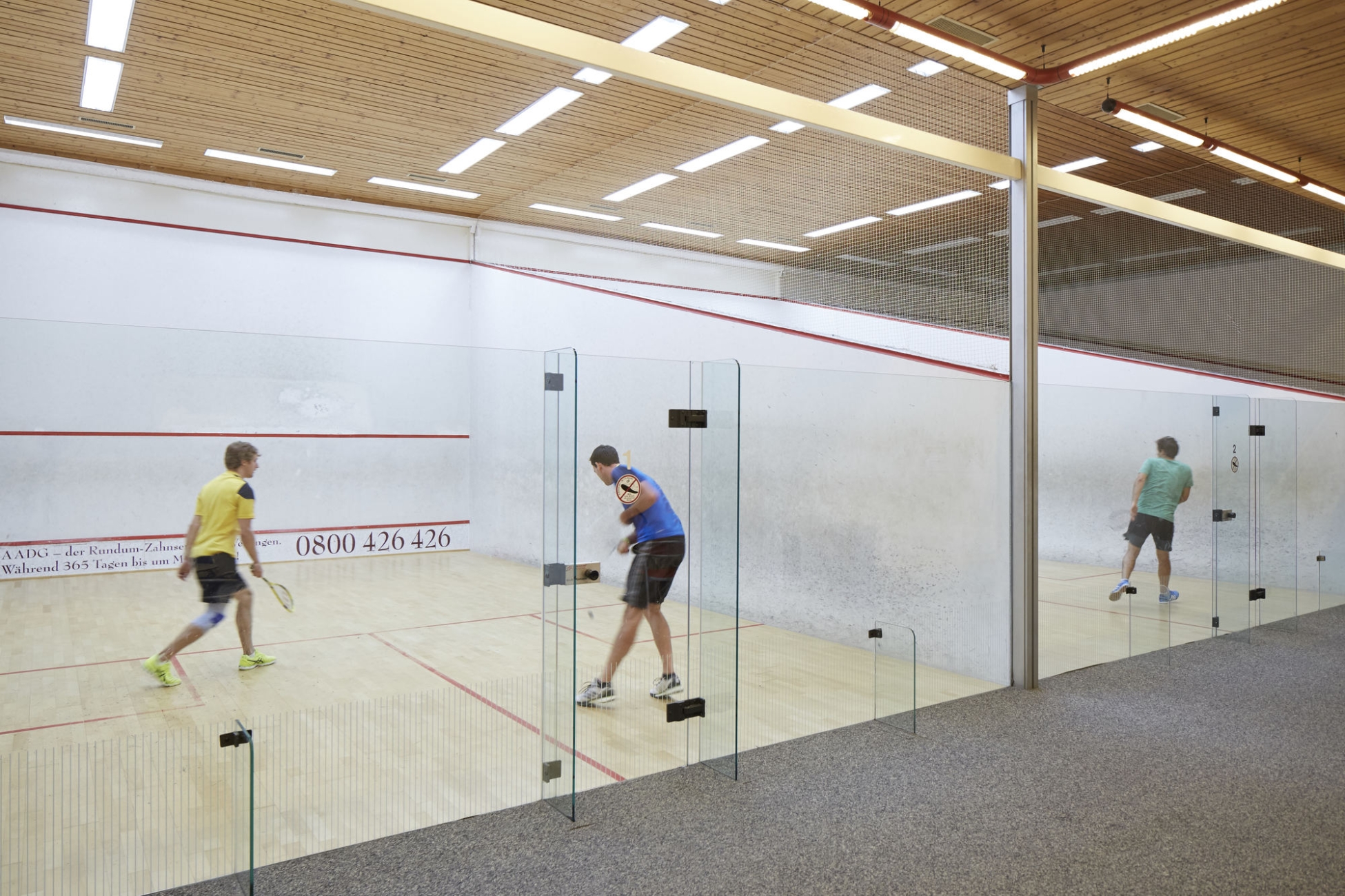 Sportgeschäft mit einem Fokus auf Tennisartikel der Marke Wilson in Baden Drei sportliche Männer spielen in der Sporthalle Badminton Badmintonhalle in Baden mit vier Netzen Sportler trainieren in einer Squash Halle im Hotel mit Fitnessstudio Blick auf zwei Squash Hallen im Bareggcenter nahe des Apartmenthotel Baden Große Tennishalle mit einigen Spielern im Sporthotel in der Schweiz Große Tennishalle mit drei Spielfeldern und einer Decke aus Holz Empfangsbereich des Fitnesscenter Baregg nahe des Aparthotel Baden Fitnesscenter mit Kraftgeräten nahe der möblierten Wohnung bei Zürich Moderne Ausdauergeräte im Hotel mit Fitnessstudio in Baden Gerätepark mit Kraftsportgeräten im Fitness Center Baregg Sportler trainiert an einem Kraftsportgerät für den Oberkörper