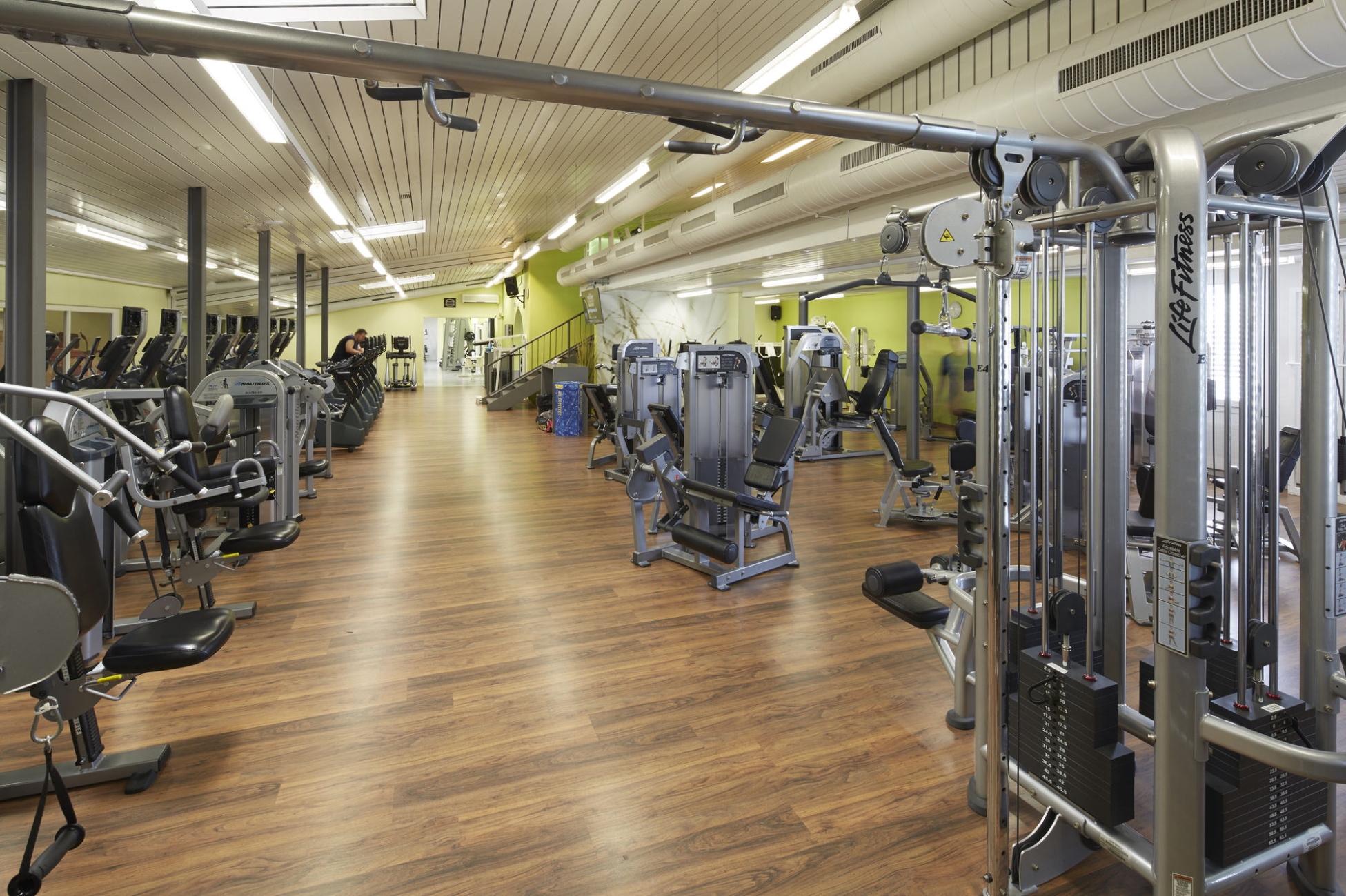 Wilson Shop Badminton Badminton hall Squash Squash courts Large indoor tennis centre with some players at the sports hotel in Switzerland Tennis hall Reception fitness studio Fitness machines Cardio machines Equipment park Working out